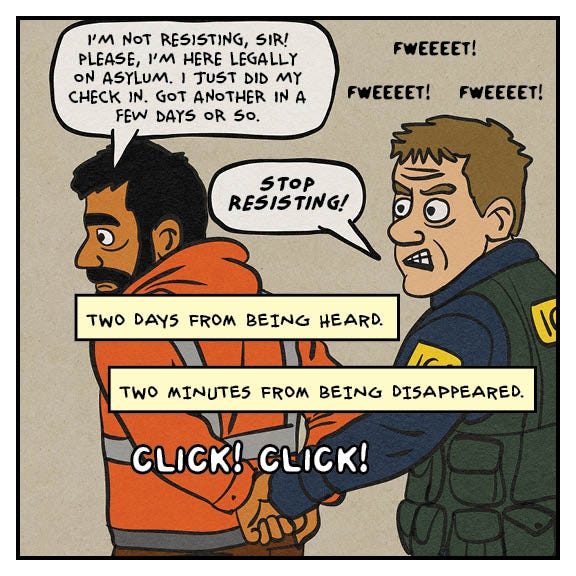But that’s not what’s happening in America right now. The issue isn’t some clean, orderly sorting of “good immigrants” and “bad immigrants.” The US Government is literally posting Pokémon memes to describe what it’s doing. The issue is a machine that treats human beings like administrative debris. A system where a “database hit,” a paperwork hiccup, a revoked status, or a missed step can turn into exile. A system where the process itself becomes the punishment.
