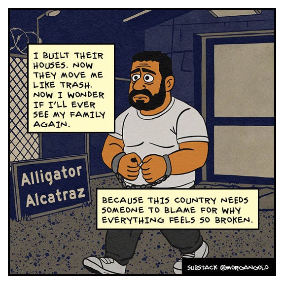 That’s the part that should stop anyone cold. Not “is he legal?” Not “why are you bringing this up?” The part that should stop you is: this man showed up for work and got taken.