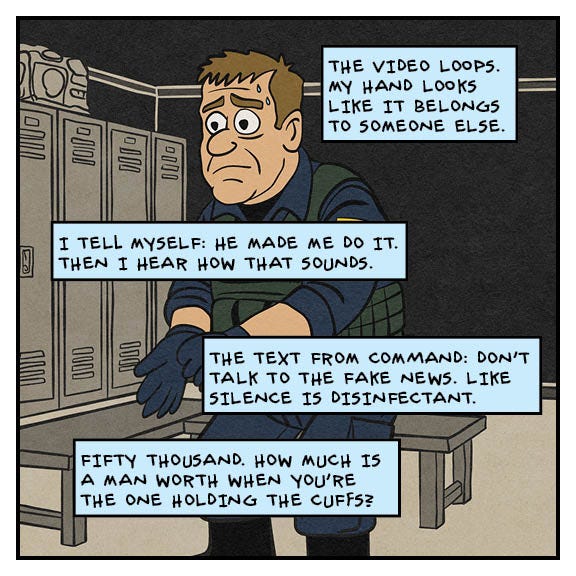 If this landed for you, the easiest way to support this kind of work is to share it. No donations, no subscriptions, no spending—just forwarding this post, posting it to your feed, or dropping the link in a group chat tells the algorithm gods (and me) that there’s room for comics like this. Every share buys me more time and reach to keep making pieces like this.