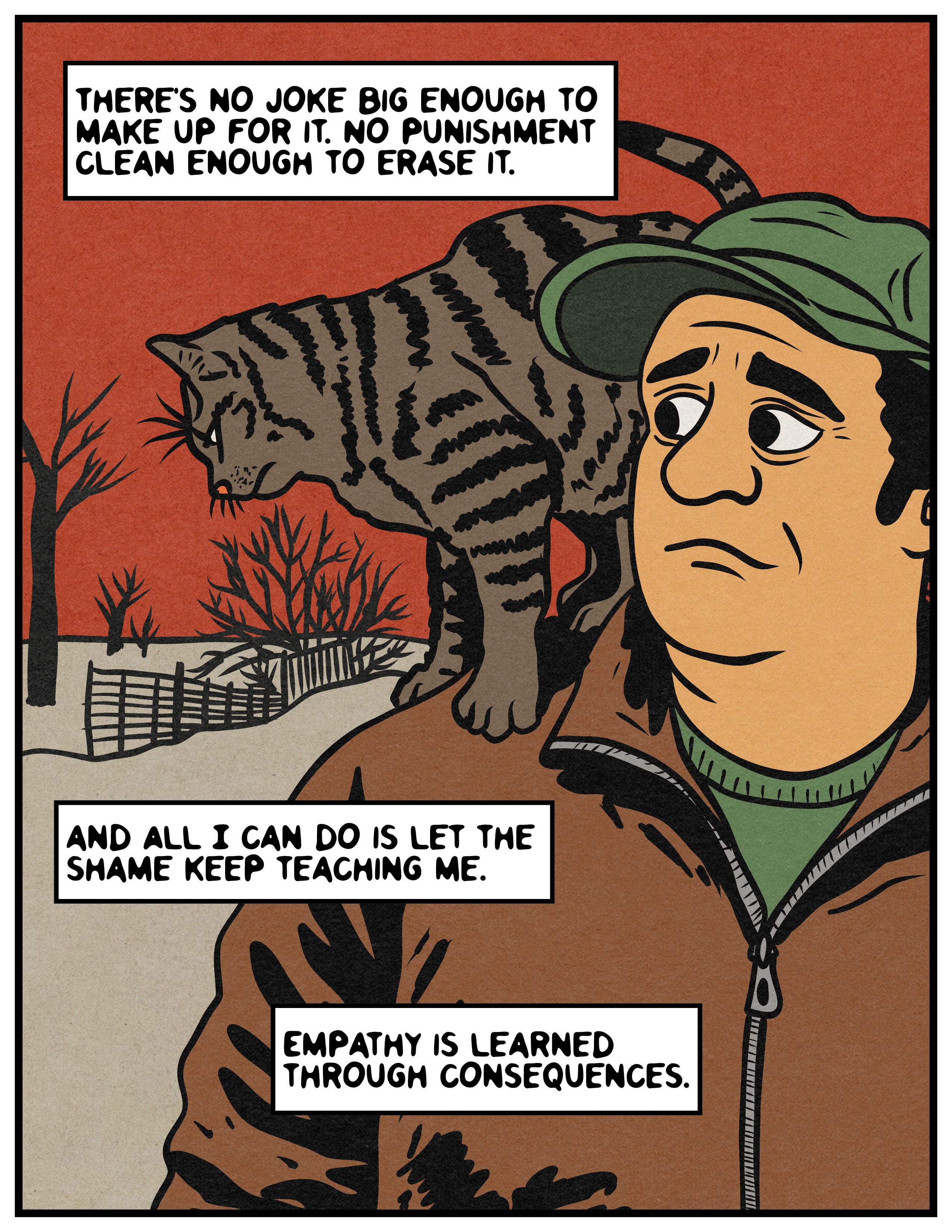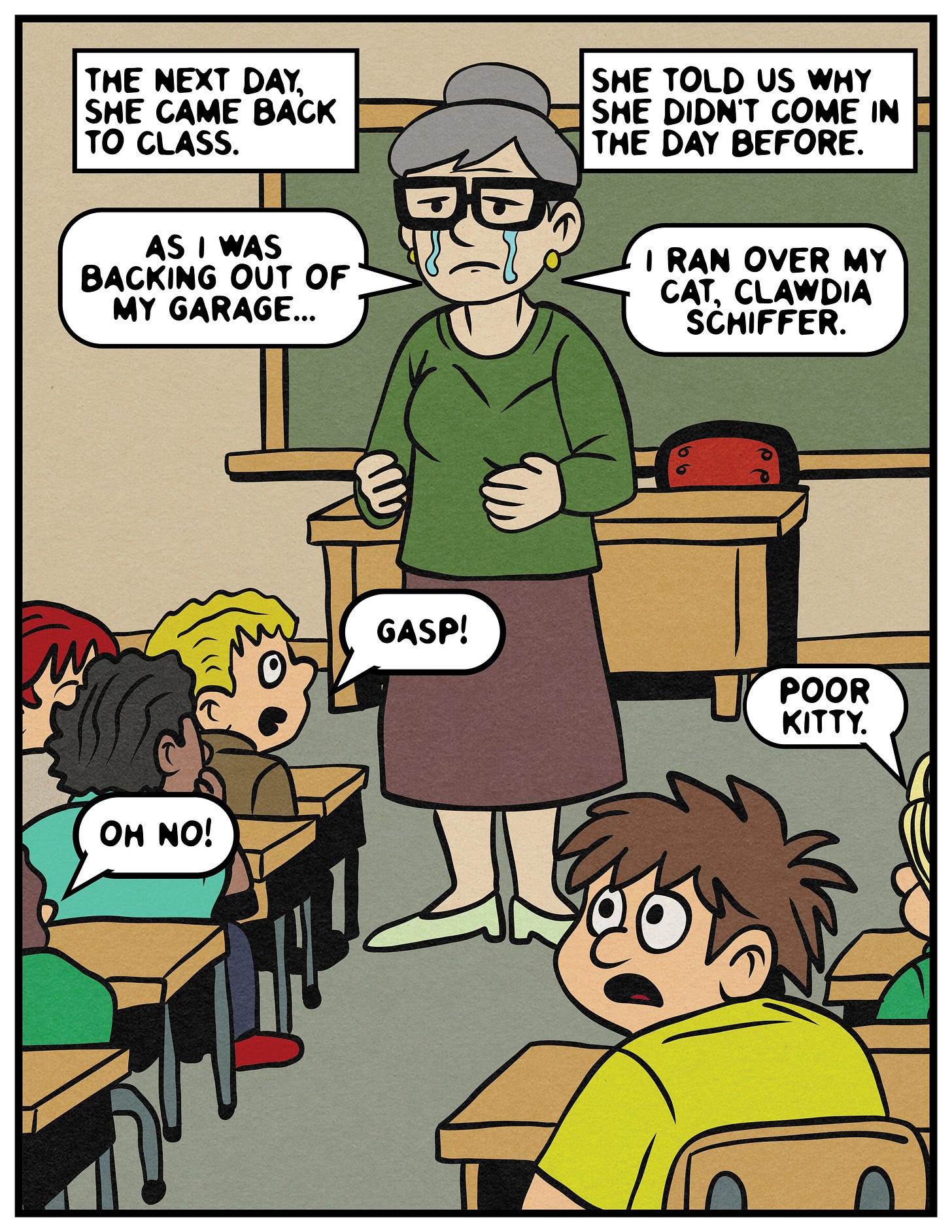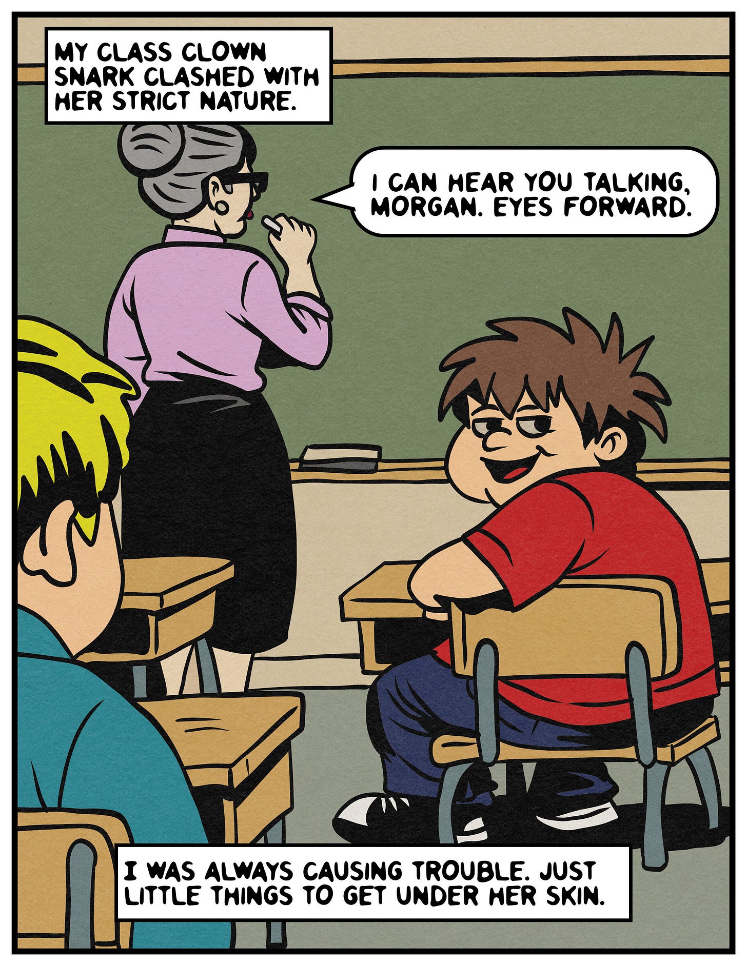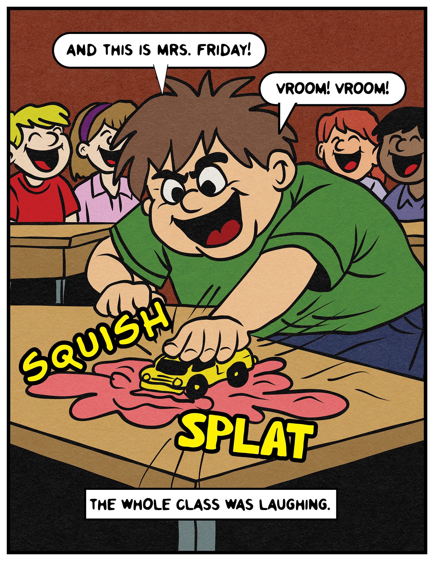 And if you are Mrs. Friday (which is not really your name), and by some stroke of cosmic force you stumbled upon this comic strip recollection from a kid who was in your 1991-1992 sixth-grade class, please know that I am truly sorry. I feel horrible for what I did to you. You were so incredibly heartbroken, and you were being honest and vulnerable by sharing what happened with the class. And it was appalling how I treated you. I still think about my actions a lot. I am filled with regret and shame when I look back on how I hurt you.